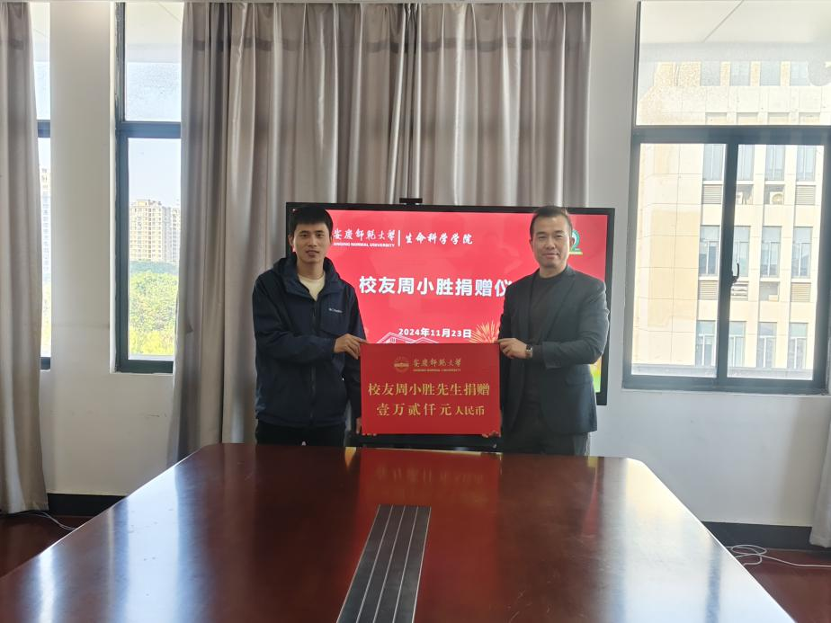 周小胜回顾了在母校的学习生活经历,真情感谢公司教师的悉心栽培,表示自己的一点捐赠微不足道,希望借此能够在学弟学妹心中种下一颗未来回馈母校、回报公司的种子,他鼓励学弟学妹牢记“敬敷世范 勤学笃行”的校训精神,刻苦学习,做到全面发展,为社会做出更大贡献。