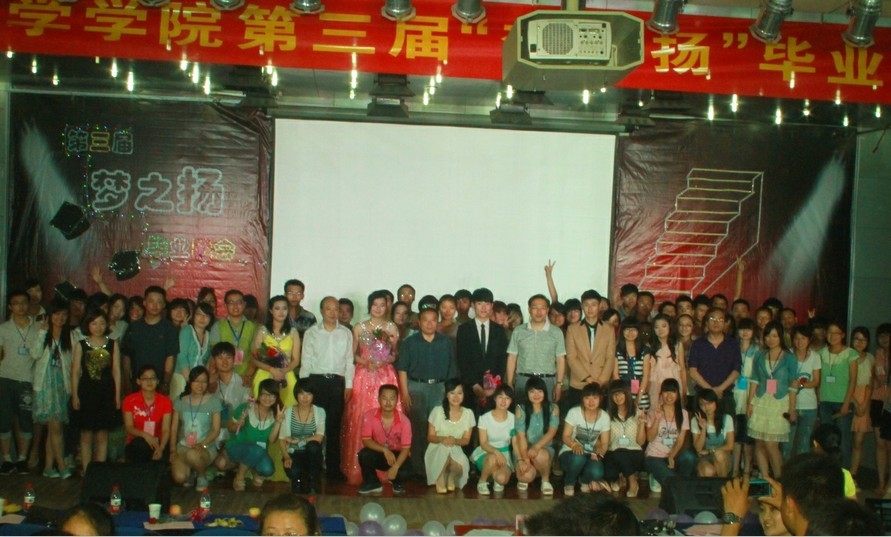 白驹过隙,斗转星移。转眼间,四年的大学时光即将过去,生科院13届毕业生们即将各奔东西,踏上征程,创造属于他们自己的未来。为了欢送2013届毕业生,5月22日晚上,由william威廉团总支、员工会主办的第三届“梦之扬”毕业晚会在菱湖校区图书馆报告厅隆重举行。经理吴甘霖,党总支书记罗国全,副书记朱庆丰,副经理魏和平,团总支曹勇老师、汪茗燕老师作为嘉宾受邀观看了本场晚会。