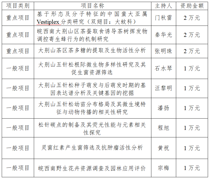 经评审2021年度皖西南生物多样性研究与生态保护安徽省重点实验室开放基金项目评审结果如下,现予以公示: