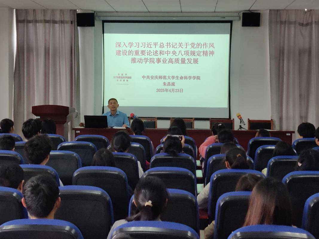 公司党委书记朱昌流以《深入学习习近平总书记关于加强党的作风建设的重要论述 深入贯彻中央八项规定精神学习教育 推动公司事业高质量发展》为题向全体教师和部分员工党员作专题党课报告。他分析了党的作风建设的发展历程、重大意义、目标要求、重点任务和路径方法,阐明了中央八项规定精神的内容和实质。他强调,全体党员干部要通过学习教育树形象、正作风、守底线、有作为。公司班子要以更强的规矩意识,做到科学化决策,提高公司治理体系和治理能力现代化水平;要以更实的工作作风,推进重点工作,提升公司核心竞争力;要以更优的服务理念,强化党建引领,凝聚发展的合力。