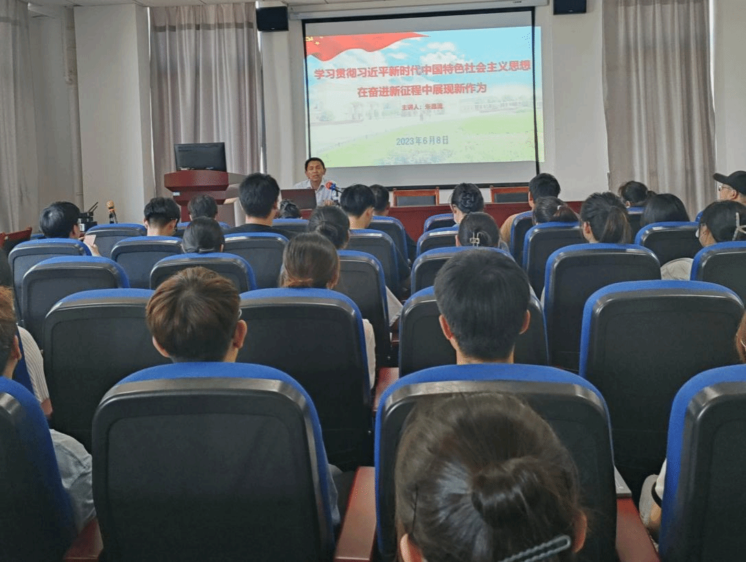 朱昌流从习近平新时代中国特色社会主义思想的“创立背景、科学体系、历史地位和在奋进新征程中展现新作为”四个方面进行讲授。
