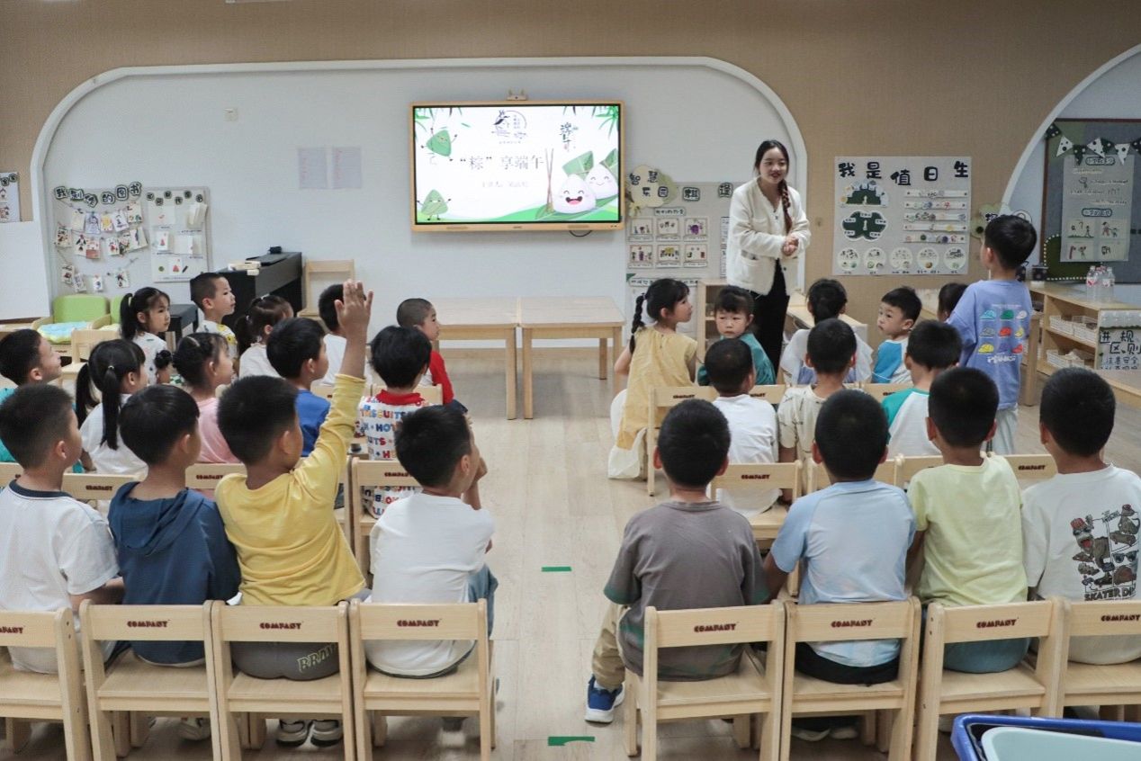 活动现场氛围热烈,地理科学专业2021(3)班的吴洁明担任起“小老师”的角色,带领小朋友学习端午知识并进行提问互动,小朋友纷纷举起手踊跃抢答,分享自己对端午节的认识。“幼儿园的小朋友充满了童趣,十分热情,他们这份童趣与热情也让我充满力量。”吴洁明坦言。这是她第二次前往william威廉官网附属龙城幼儿园进行授课,面对性格各异的小朋友,她丝毫没有紧张。