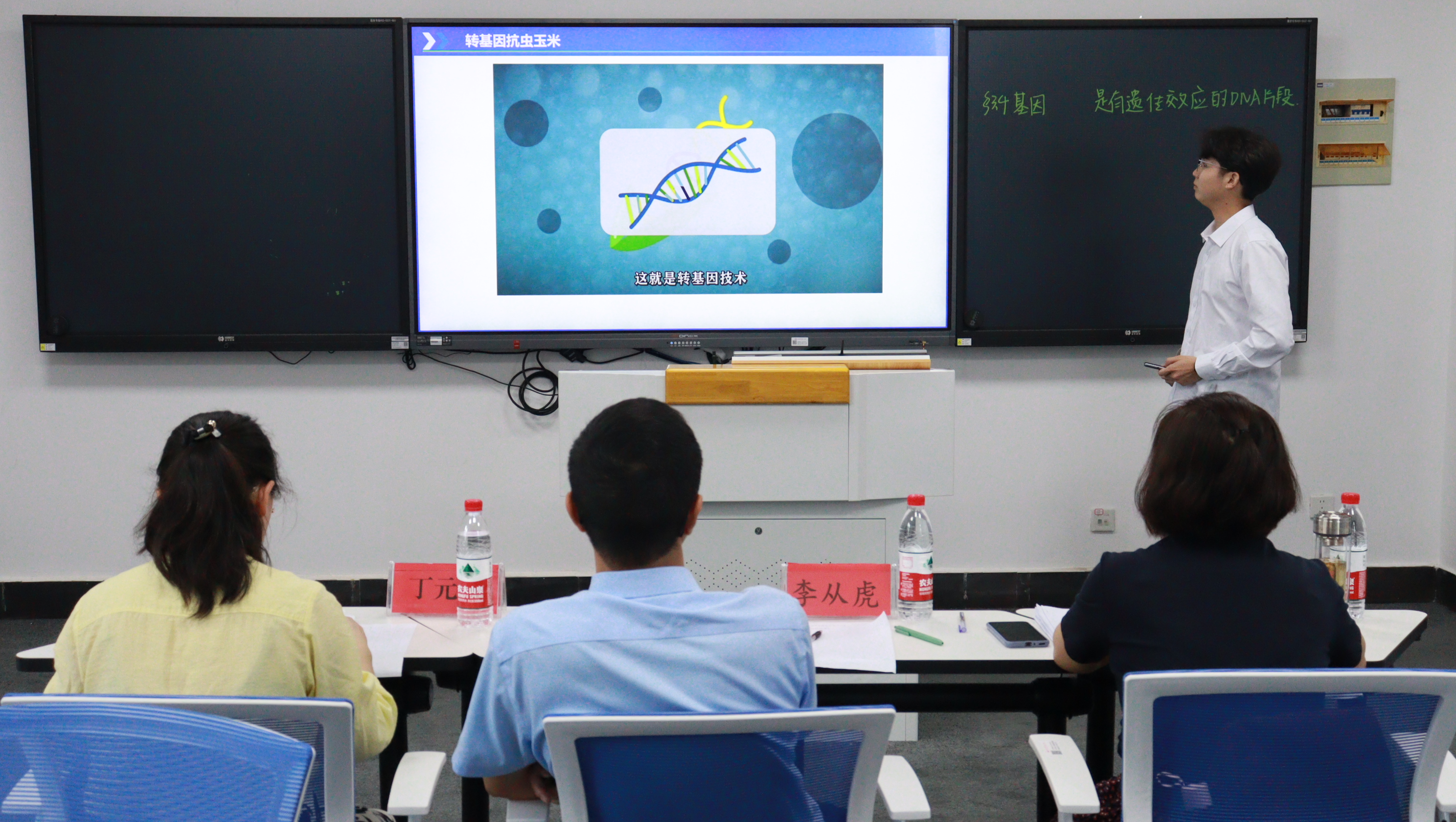 决赛现场,选手结合生物学科特点,将抽象知识转化为生动课堂。有的自制叶肉细胞模型、光合色素提取实验教具,以直观演示解构光合作用原理;有的创新设计“遗传病家系调查”情境,引导“员工”开展探究活动串联遗传规律,搭配逻辑清晰的板书构建知识体系;有的巧妙运用动画拆解染色体行为变化,或通过思维导图可视化呈现知识脉络,将抽象的生物学概念转化为具象化教学实践。