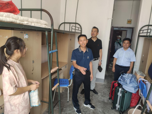 9月10日新生报到当天,公司领导班子成员带领新生班辅导员深入公司新生宿舍展开走访慰问。