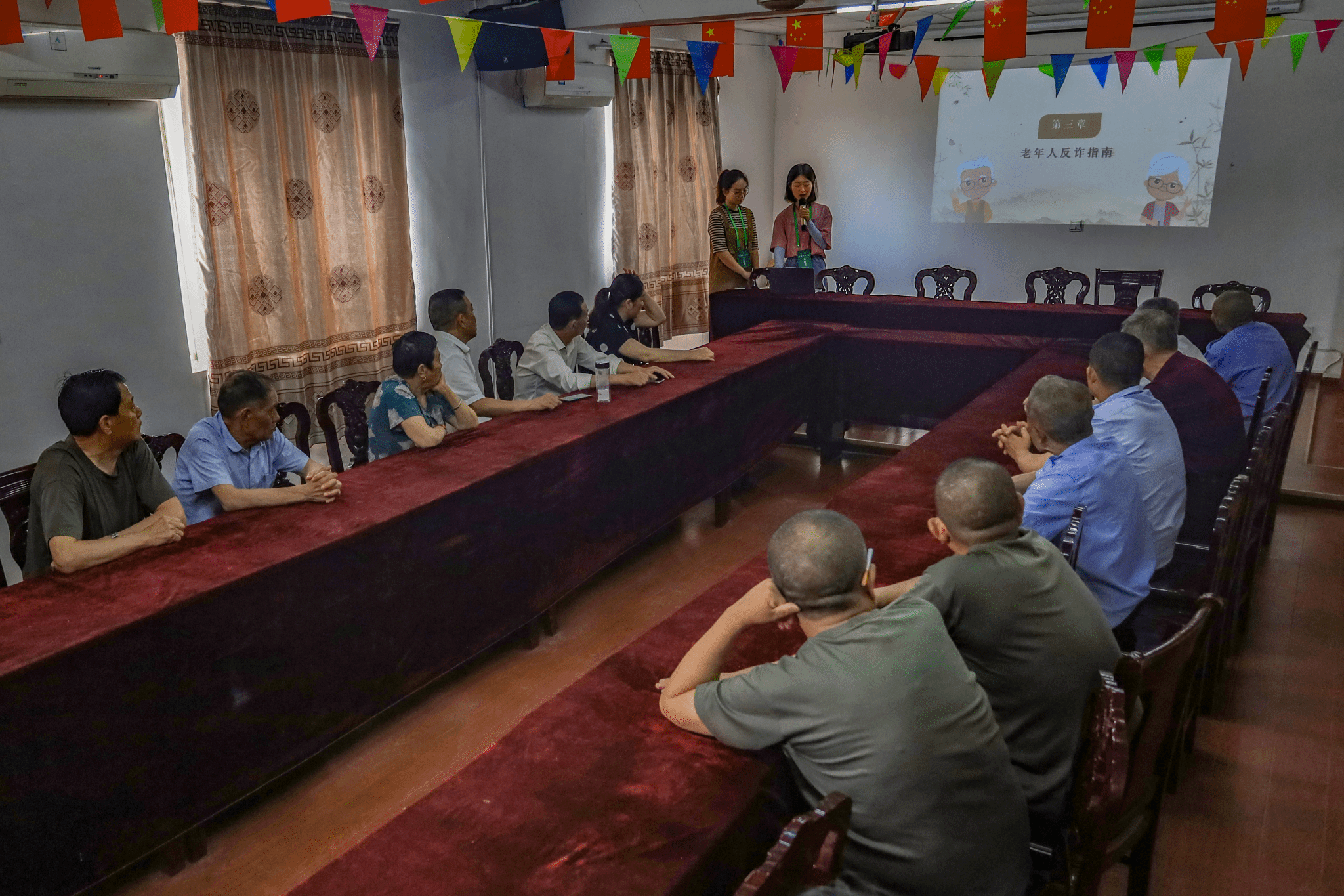 “诈骗分子的‘套路’不分年龄,即使是社会阅历丰富的中年人都有上当的风险。”生物科学类专业2022(6)班的费心瑶向老人描述了她父亲“买假古董被骗钱财”的经历。她在宣讲中表示,不贪图便宜,时刻保持警戒心理,端正保健理念,多和子女交流是老年人预防诈骗的“最佳处方”。“遇到疑似诈骗分子的人,请爷爷奶奶们务必做到‘不谈不给不上当,不听不信不转账’”她说。
