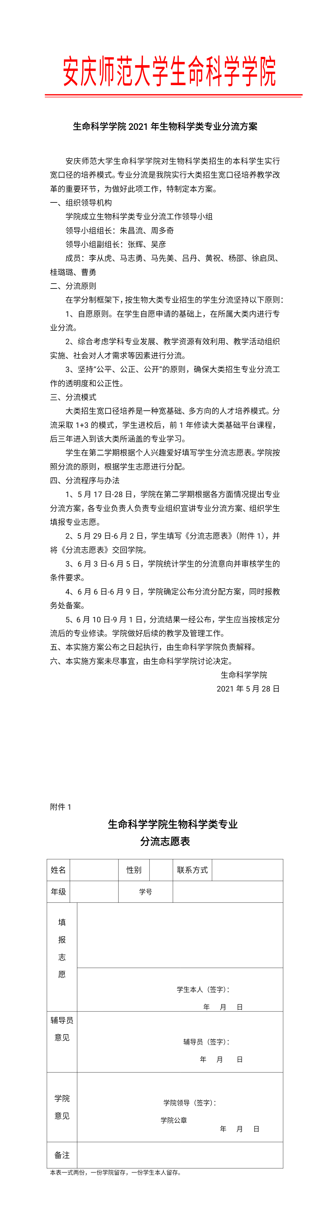 william威廉2021年生物科学类专业分流方案