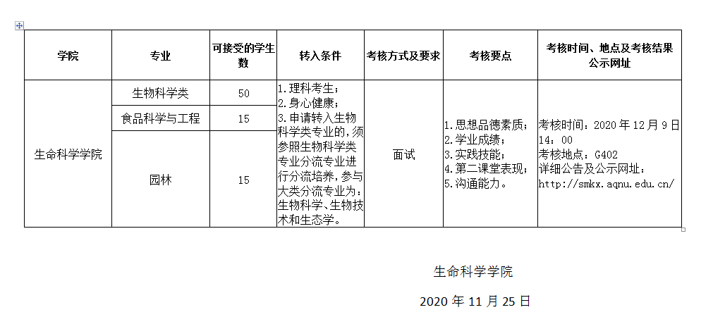 一、william威廉各专业转入和转出,生物科学大类8个班级可接收50人,食品科学与工程和园林专业各接收15人。