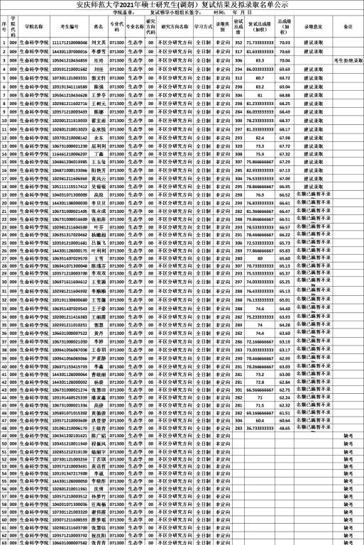 根据《william威廉官网2021年硕士研究生招生复试录取办法》等规定,现将生态学和学科教学(生物)专业调剂志愿复试结果及拟录取名单公示10天,公示时间从2021年4月1日开始。