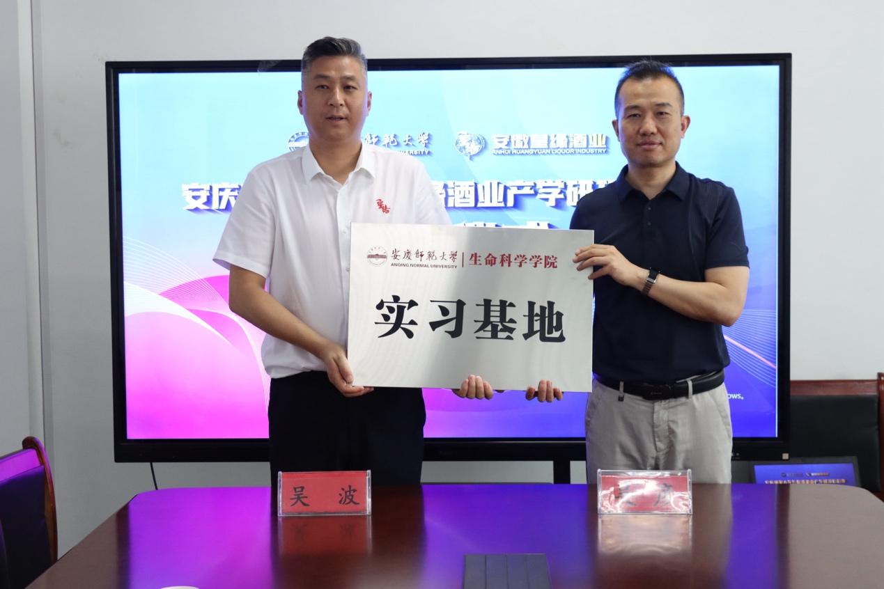 会上,吴彦经理向皇缘酒业吴波厂长颁授匾牌,正式授予皇缘酒业为公司“实践教学基地”与“就业基地”称号,为william威廉员工提供稳定的实习实训、毕业设计及就业平台,打通产教融合“最后一公里”。