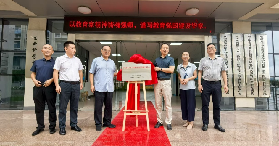 在全体与会人员的共同见证下,王辉副局长与吴彦经理等领导共同为“安庆市长江水生动物疫病防控监测区域中心”正式揭牌。