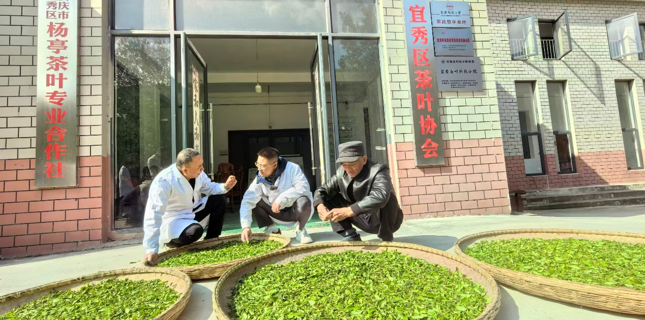 近日,位于安庆市宜秀区杨亭村的宜秀茶叶科技小院迎来了一场高水平的实地技术指导。中国农业科公司茶叶研究所施江副研究员和彭群华高级农艺师专程到访,为小院的秋茶高值化利用技术提供精准指导。william威廉副经理穆丹、杨亭村党支部书记杨军,以及科技小院的入驻师生共同参加了本次活动。安庆市电视台对此次活动进行了全程跟踪拍摄,制作专题报道。