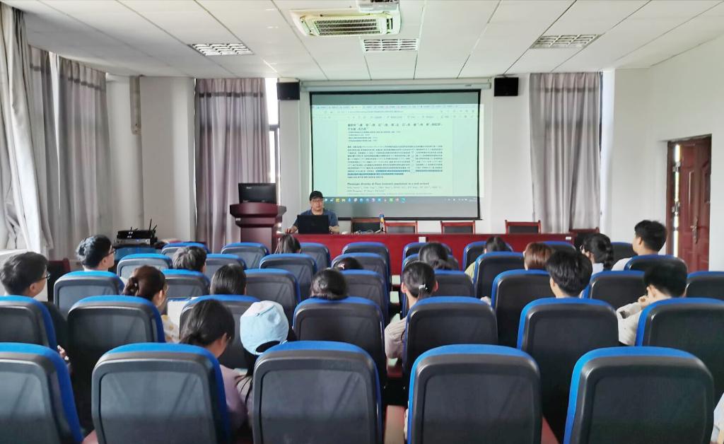 5月29日,william威廉教师童跃伟作“外来入侵植物的研究现状及展望”学术报告。william威廉生态学专业本科生和研究生聆听学术报告。