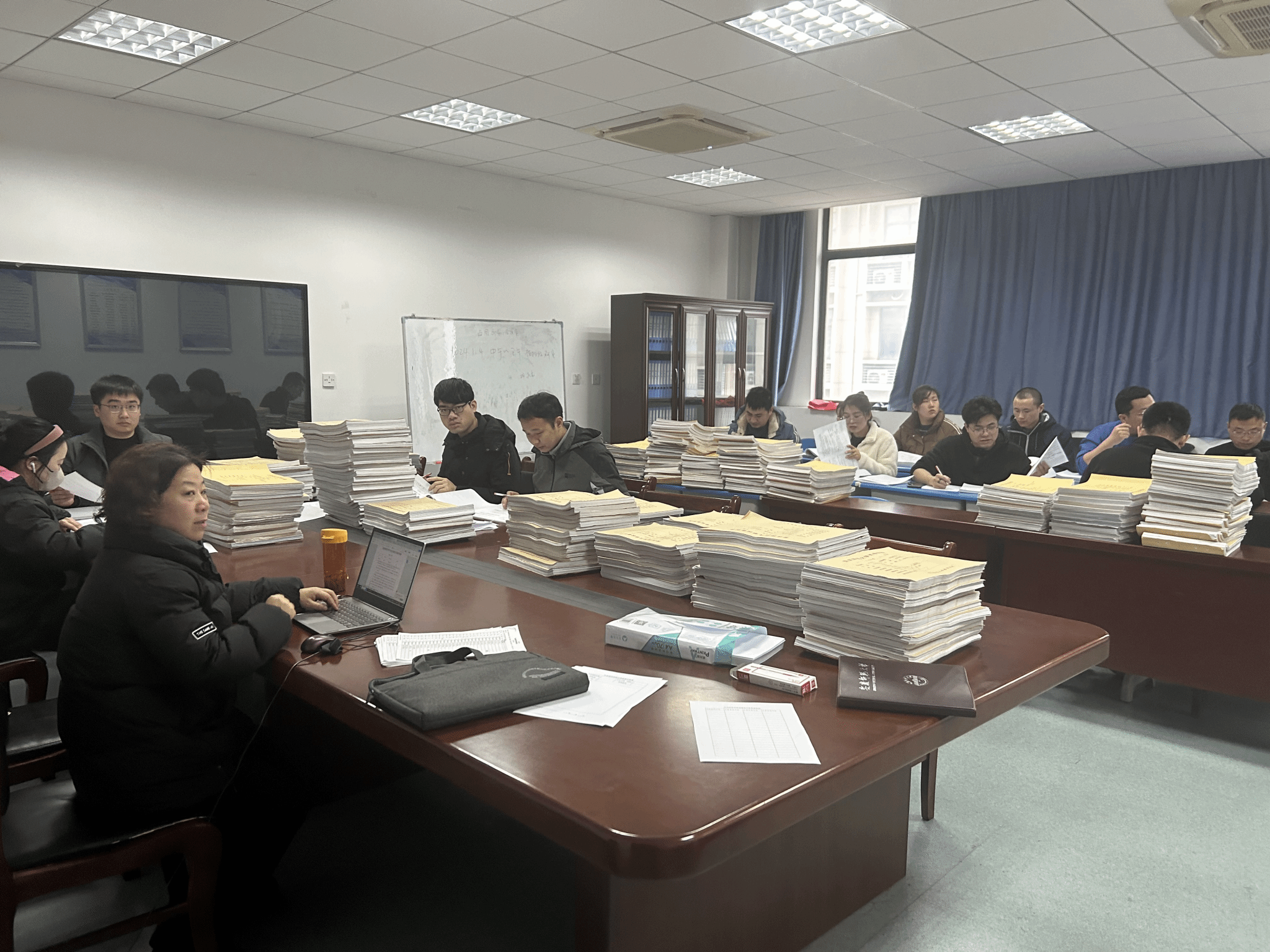 在副经理吴彦的带领下,由公司督导、教学办人员和近三年新进教师组成专项检查小组,针对2021-2023年期间的期末试卷和毕业论文进行全覆盖检查。期末试卷检查内容重点为:试卷材料存档的齐全度、阅卷评分、试卷分析、课程目标达成度、成绩统计、审签手续六个方面。毕业论文检查内容重点为:论文格式、指导意见、评阅意见等填写的规范情况。