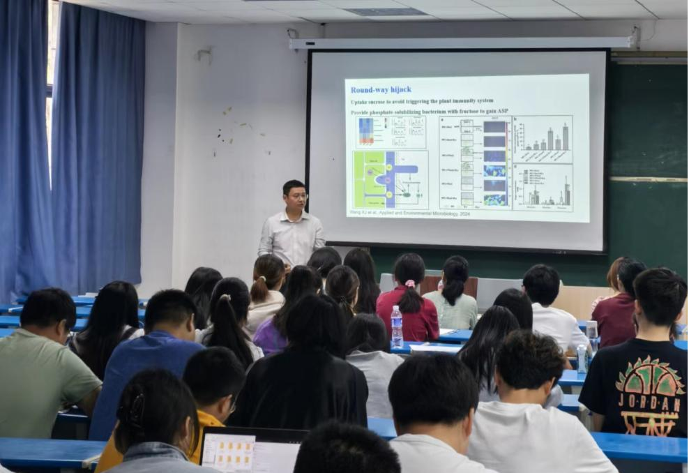会上,方泽民教授从生活中的微生物到工业化生产的真菌开发利用,深入浅出地介绍真菌与植物、真菌与原核微生物、真菌与人类之间的联系,以及作为真菌菌肥在农业生产效率的良好前景。随后方泽民教授介绍了木质纤维素的相关内容,并详细解答了员工们提出的关于木质纤维素酶的差异表达以及如何获取相关基因序列等相关问题。