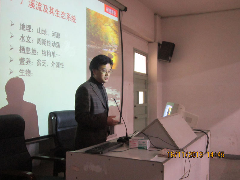 11 月 16 日 下午,安徽师范大学严云志教授应邀在菱湖校区414教室作了“溪流鱼类生态学研究——以皖南山区为例”专题学术讲座。william威廉100多名师生聆听了报告,报告会由william威廉副经理魏和平博士主持。