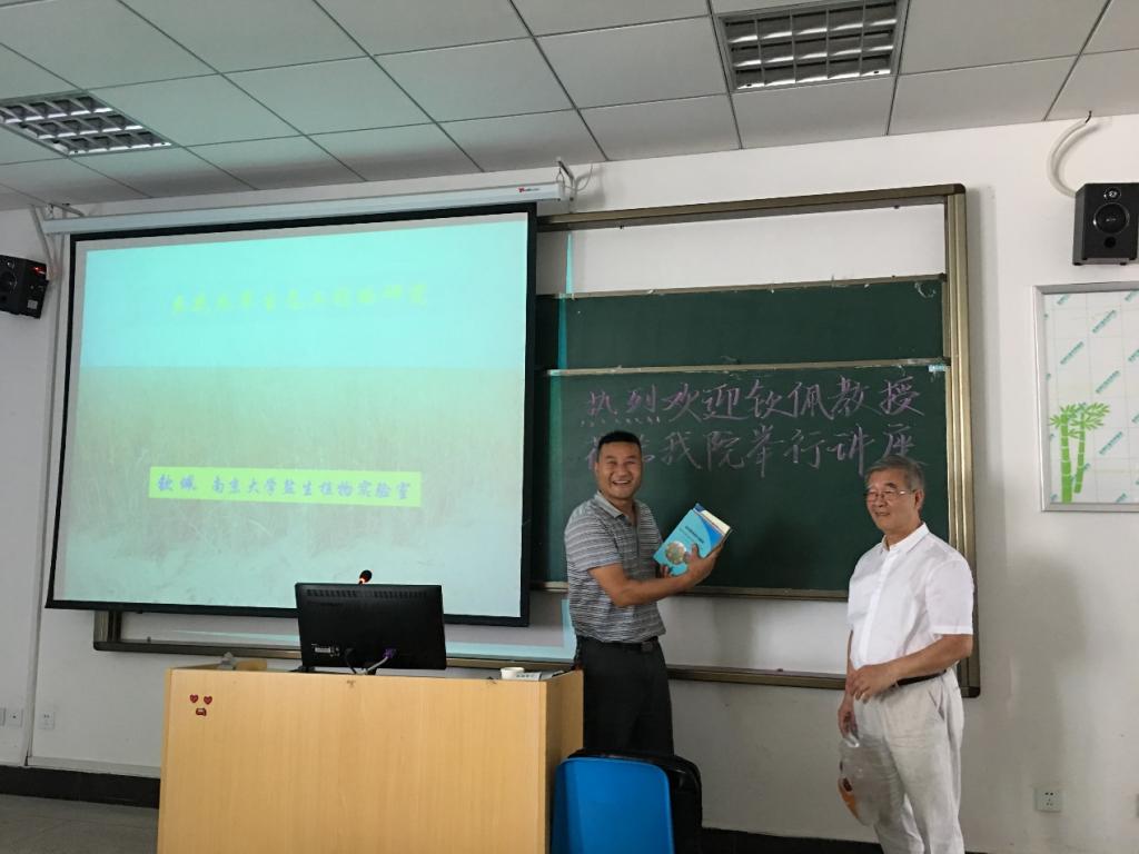 在本次讲座中,钦教授结合自己多年的科研实践,从互花米草的引种、互花米草问题与米草生态工程和互花米草生态工程的国内外影响等三个方面展开,深入浅出、形象生动的向大家阐述了米草生态工程与海滨盐土农业生态工程原创理论与技术。钦佩教授还把自己主编的《生态工程学》(第三版)、《海滨系统生态学》、《生物质能产业生态工程》、《海滨锦葵的应用研究》4部专著赠送william威廉,供师生借阅学习。