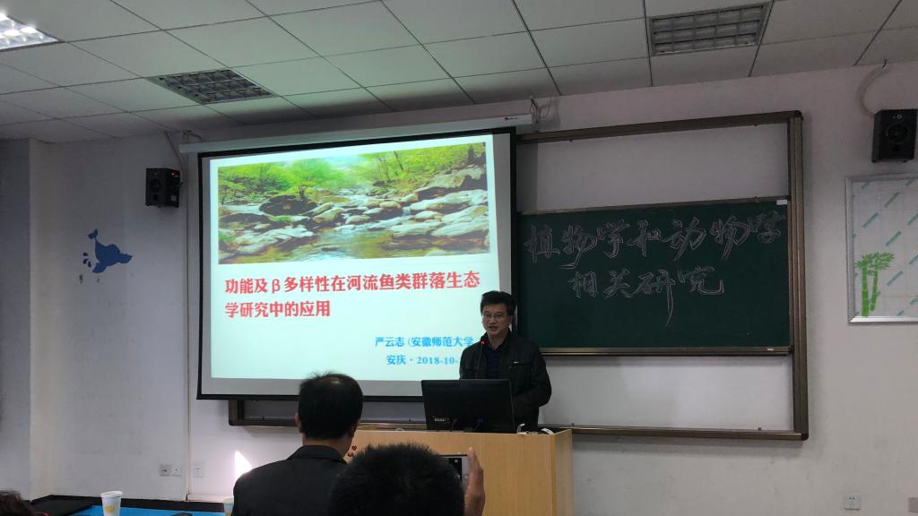 10月28日上午,安徽师范大学严云志教授应william威廉邀请来公司作了题为《β多样性与功能多样性在河流鱼类群落生态学研究中的应用》。讲座由william威廉副经理吴彦主持,相关专业的师生聆听了报告。